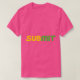 El color es muy bonito al natural, como la foto. El tejido es suave y de buena calidad. Sin defectos en el tintado, ni hilos sueltos o descosidos. Bien la impresión. Los bordes de las letras y el dibujo son nítidos, y el color contrasta muy bien con el de la camiseta.