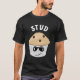 El color es muy bonito al natural, como la foto. El tejido es suave y de buena calidad. Sin defectos en el tintado, ni hilos sueltos o descosidos. Bien la impresión. Los bordes de las letras y el dibujo son nítidos, y el color contrasta muy bien con el de la camiseta.