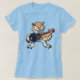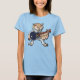 A cute owl rocking a dazzling white jumpsuit on a t-shirt. My original illustration of a singing owl wearing a jumpsuit decorated with a blue peacock design, and playing a dark blue acoustic guitar. A gift for fans of owls and classic rock and roll music.