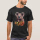 El color es muy bonito al natural, como la foto. El tejido es suave y de buena calidad. Sin defectos en el tintado, ni hilos sueltos o descosidos. Bien la impresión. Los bordes de las letras y el dibujo son nítidos, y el color contrasta muy bien con el de la camiseta.