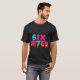 El color es muy bonito al natural, como la foto. El tejido es suave y de buena calidad. Sin defectos en el tintado, ni hilos sueltos o descosidos. Bien la impresión. Los bordes de las letras y el dibujo son nítidos, y el color contrasta muy bien con el de la camiseta.