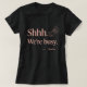 Enjoy a quiet nap with your pup in this funny dog mom t-shirt! The design features a minimalist line art sleeping poodle and the relatable quote "Shhh. We're busy." rendered in a soft coral pink. Easily personalize the text at the bottom with your own dog's name for a truly unique look. It makes a perfect gift for any dog lover who values their cuddle time.