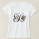 Kiss the birthday girl with this funny tropical tshirt that has "KISS ME - I'M 80" text. The large age 80 is embellished with tropical floral bouquets featuring palms, anthuriums, fig leaves, bird of paradise and orchids. Have a memorable milestone celebration with a tropical twist! Other ages are available in this design. Simply contact this designer using the messenger to request the age needed.