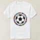La competencia más importante del fútbol/del fútbol en 2010. Suceso en S África. Anillo de 32 banderas nacionales de equipos participantes alrededor del balón de fútbol. Añada su texto.