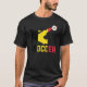 El color es muy bonito al natural, como la foto. El tejido es suave y de buena calidad. Sin defectos en el tintado, ni hilos sueltos o descosidos. Bien la impresión. Los bordes de las letras y el dibujo son nítidos, y el color contrasta muy bien con el de la camiseta.