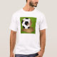 Un balón de fútbol cubierto en fango y la reclinación en un campo fangoso.