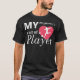 El color es muy bonito al natural, como la foto. El tejido es suave y de buena calidad. Sin defectos en el tintado, ni hilos sueltos o descosidos. Bien la impresión. Los bordes de las letras y el dibujo son nítidos, y el color contrasta muy bien con el de la camiseta.