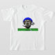 Un gran regalo para un hincha de fútbol. Un divertido personalizado marrón que usa un casco de fútbol corre por el campo para anotar un toque.
