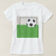 Un fútbol y un gol sobre hierba verde. Este diseño se ve realmente efectivo en esta camiseta femenina