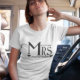 Camiseta blanca Futura Sra para mujeres recién comprometidas. Personalízala añadiendo el apellido del marido / cónyuge.