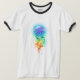 Grandes medusas de azulejo brillantes, de dibujos artísticos, con largos tentáculos en blanco, pintadas con fondo multicolor de acuarela. Mariscas arcoiris.