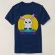 El color es muy bonito al natural, como la foto. El tejido es suave y de buena calidad. Sin defectos en el tintado, ni hilos sueltos o descosidos. Bien la impresión. Los bordes de las letras y el dibujo son nítidos, y el color contrasta muy bien con el de la camiseta.