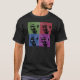 El color es muy bonito al natural, como la foto. El tejido es suave y de buena calidad. Sin defectos en el tintado, ni hilos sueltos o descosidos. Bien la impresión. Los bordes de las letras y el dibujo son nítidos, y el color contrasta muy bien con el de la camiseta.