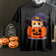 Camiseta Gato con bruja gorra en Halloween Jack-O-Lantern