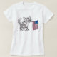 Un gato del dibujo animado que sostiene una bandera colonial de los E.E.U.U. Este diseño lindo, patriótico haría un buen regalo para los amantes o los niños del gato.