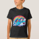 Camiseta Gato de la Galaxia Arcoiris montando tiburón en el