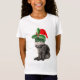 Camiseta Gato de moda posando con el gorra de Santa Claus
