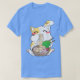 El color es muy bonito al natural, como la foto. El tejido es suave y de buena calidad. Sin defectos en el tintado, ni hilos sueltos o descosidos. Bien la impresión. Los bordes de las letras y el dibujo son nítidos, y el color contrasta muy bien con el de la camiseta.