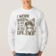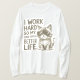 Gato gruñón con gafas de sol con la frase: "Trabajo duro para que mi gato tenga una vida mejor".