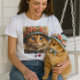 Camiseta Gato jengibre en Gorra azul con amante del gato fl