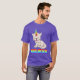 El color es muy bonito al natural, como la foto. El tejido es suave y de buena calidad. Sin defectos en el tintado, ni hilos sueltos o descosidos. Bien la impresión. Los bordes de las letras y el dibujo son nítidos, y el color contrasta muy bien con el de la camiseta.