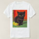 ¡Camiseta con un gato negro al estilo Van Gogh! Este bonito gatito se encuentra junto a los girasoles, sobre un suelo verde y contra una pared roja. ¡Un regalo lindo para los amantes del gato y los coleccionistas holandeses de arte!