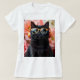 Gato negro lindo con gafas y audífonos, sobre el fondo de las flores