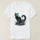 Un capricho ilustracion de un gato negro con un brillante ojo azul sentado en el techo de una casa espeluznante. Perfecto para camisetas de Halloween, decoración, amantes de los gatos o todo aquel que ame el arte místico y espeluznante.