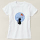 Hermosa silueta de gato negro y pájaro rojo en una camiseta circular. El texto se puede personalizar.