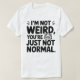 Gato, no soy raro, eres un diseño normal. Por el extraño amante del gato, la persona rara solía hablar con sus amigos sobre el gato lindo y ser raro o nervioso. Representado por el gracioso gato Cute y el texto "No soy raro, eres simplemente normal".