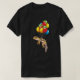 El color es muy bonito al natural, como la foto. El tejido es suave y de buena calidad. Sin defectos en el tintado, ni hilos sueltos o descosidos. Bien la impresión. Los bordes de las letras y el dibujo son nítidos, y el color contrasta muy bien con el de la camiseta.