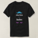 El color es muy bonito al natural, como la foto. El tejido es suave y de buena calidad. Sin defectos en el tintado, ni hilos sueltos o descosidos. Bien la impresión. Los bordes de las letras y el dibujo son nítidos, y el color contrasta muy bien con el de la camiseta.
