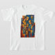 Celebrate the spirit of Epiphany and Christmas with this vibrant Three Wise Men artwork, featuring a modern, geometric interpretation of the Magi bearing gifts beneath the guiding Star of Bethlehem. This stylized design blends stained-glass aesthetics with bold hues of blue, orange, red, and gold, making it a striking choice for holiday apparel, religious celebrations, and cultural gifting.