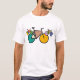 Una camiseta para cualquier persona que esté en el ciclo y tiene gusto de diseño limpio, moderno. Éste es inspirado por el artista Mondrian y particularmente su trabajo abstracto geométrico. Hay ilustraciones de tres formas clásicas de la bicicleta, cada uno con los bloques sólidos de color dentro del marco y ruedas. Los colores incluyen amarillo, la lila, el verde y el naranja.