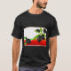 El color es muy bonito al natural, como la foto. El tejido es suave y de buena calidad. Sin defectos en el tintado, ni hilos sueltos o descosidos. Bien la impresión. Los bordes de las letras y el dibujo son nítidos, y el color contrasta muy bien con el de la camiseta.