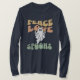 ¿Buscando algunos lindos camisetas de Halloween para la temporada espeluznante? Echa un vistazo a este diseño inspirado en los años 70, que presenta un fantasma retro y el texto "paz, amor, espías". ¡Transferirla a bolsos de dulces, tarjetas y más de Halloween!