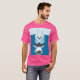 El color es muy bonito al natural, como la foto. El tejido es suave y de buena calidad. Sin defectos en el tintado, ni hilos sueltos o descosidos. Bien la impresión. Los bordes de las letras y el dibujo son nítidos, y el color contrasta muy bien con el de la camiseta.