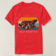 El color es muy bonito al natural, como la foto. El tejido es suave y de buena calidad. Sin defectos en el tintado, ni hilos sueltos o descosidos. Bien la impresión. Los bordes de las letras y el dibujo son nítidos, y el color contrasta muy bien con el de la camiseta.