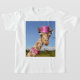 Para divertirse un poco, aquí hay una jirafa en un gorra rosa brillante y un collares de estrangulador. Esta imagen fue creada a mano y no se genera IA.