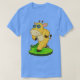 El color es muy bonito al natural, como la foto. El tejido es suave y de buena calidad. Sin defectos en el tintado, ni hilos sueltos o descosidos. Bien la impresión. Los bordes de las letras y el dibujo son nítidos, y el color contrasta muy bien con el de la camiseta.