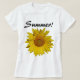 Girasol amarillo con semillas que empiezan a madurar. El texto de arriba dice "¡Verano!"