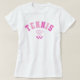 Add a pop of color to your match day outfit with this trendy Girly Hot Pink tennis t-shirt! Designed with female players in mind, this tee is super cute and stylish. The classic "TENNIS" text uses a vintage athletic font and is paired with a graphic of crossed rackets and a ball. Perfect for women and girls who want to look fashionable while acing their game. This makes a great gift for a daughter, sister, or friend who loves the sport!