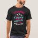 El color es muy bonito al natural, como la foto. El tejido es suave y de buena calidad. Sin defectos en el tintado, ni hilos sueltos o descosidos. Bien la impresión. Los bordes de las letras y el dibujo son nítidos, y el color contrasta muy bien con el de la camiseta.