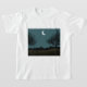 Este diseño presenta un encantador ilustracion de una luna creciente sostenida sobre una cuerda, como si fuera un globo. Un chica se sienta en un banco de un parque sosteniendo la cuerda.