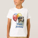 ¡Es un cumpleaños! ¡Celebremos con nuestro Pastor Australiano y un trío de globos de cumpleaños! También podemos hacer este diseño sin la escritura del 'feliz cumpleaños'.