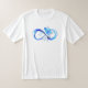 Luminous infinity symbol with glowing, beautiful, lushly blooming rose made of blue flames on black background.
