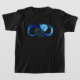 Luminous infinity symbol with glowing, beautiful, lushly blooming rose made of blue flames on black background.