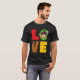 El color es muy bonito al natural, como la foto. El tejido es suave y de buena calidad. Sin defectos en el tintado, ni hilos sueltos o descosidos. Bien la impresión. Los bordes de las letras y el dibujo son nítidos, y el color contrasta muy bien con el de la camiseta.