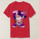 El color es muy bonito al natural, como la foto. El tejido es suave y de buena calidad. Sin defectos en el tintado, ni hilos sueltos o descosidos. Bien la impresión. Los bordes de las letras y el dibujo son nítidos, y el color contrasta muy bien con el de la camiseta.