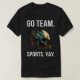 El color es muy bonito al natural, como la foto. El tejido es suave y de buena calidad. Sin defectos en el tintado, ni hilos sueltos o descosidos. Bien la impresión. Los bordes de las letras y el dibujo son nítidos, y el color contrasta muy bien con el de la camiseta.